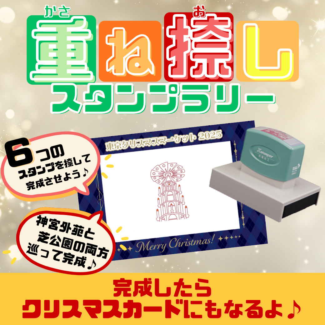NEW事前予約チケット発売スタート♪ 25.10.21 NEW2つの会場を巡礼して完成させよう♪クリスマススタンプラリー開催! 25.10.21 NEW今年のマグカップのデザインを発表! 25.10.21 東京クリスマスマーケット2025 アルバイト募集 25.10.09 協賛企業募集 25.10.09 東京クリスマスマーケット 公式アンバサダー 初代“JAPANクリストキント”オーディション開催! 25.08.05 2025年度開催情報 25.08.05 出店者募集 ※終了しました※ 25.08.05 12月23日、24日、25日の3日間限定クリスマスケーキ付入場チケットが登場! 24.12.18 東京クリスマスマーケットの公式LINEができました! この度、公式LINE開設記念になんと!「マットブラック」のマグカップをプレゼント♪ 24.12.07 ブース番号6番「モエシャンドン」ブースでシャンパン購入のみでVIP Roomが使用できます! 24.12.05 総額100万円越え!会場内でのお買い物レシート総額5,000円以上で参加できる抽選会を会場内「インフォメーション」ブースで実施中! 24.12.05 東京クリスマスマーケットにスケートリンクが登場! 24.11.30 『クリスマスカード(アイナ・ジ・エンド)』イベント初日に初披露された様子を公開! 24.11.27 ワークショップで楽しもう! 24.11.25 東京クリスマスマーケットはVIPルームで暖かくゆったりと過ごそう! 24.11.22 5,000円のレシートでくじ引きにチャレンジ! 24.11.22 大人気!オリジナルアートマグカップで映えデコレーション!黒のマグカップはお店で買ってね! 24.11.22 郵便ポストはインフォメーション横、ザイフェンブースで買えば郵送無料 24.11.22 【東京クリスマスマーケットからのお知らせ】 24.11.18 クリスマスピラミッドがリニューアル! 24.11.14 ステージ情報公開! 24.11.13 オープニングセレモニー出演決定!東京クリスマスマーケット2024 イメージソング アイナ・ジ・エンド 「クリスマスカード」 (作詞・作曲:槇原敬之) 24.11.12 グルメ情報公開! 24.11.12 今年からWebでのチケット販売がTrip.comに変わりました! 24.11.11